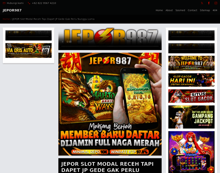 JEPOR987 adalah platform slot terpercaya yang memudahkan main modal receh tapi tetap bisa dapet JP gede tanpa perlu nunggu lama. Main mudah dan cuan cepat di JEPOR987 sekarang.