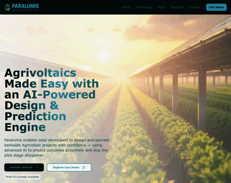 Paralumis helps solar developers design bankable Agrivoltaic projects without pilots. AI-driven design and prediction engine unlocking the future of agrivoltaics.