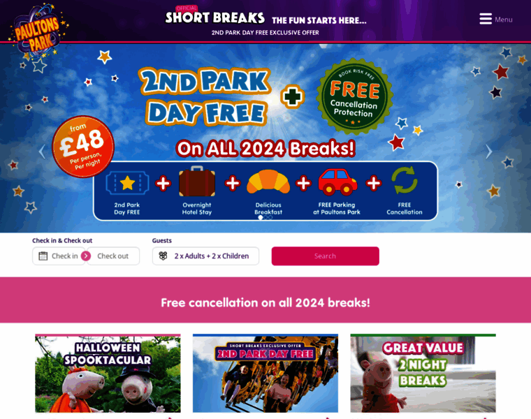 Book your Paultons Park break including Peppa Pig World tickets and hotel with your 2nd Park Day FREE.