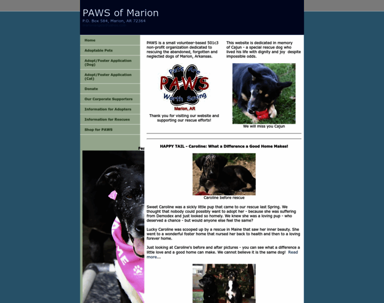 PAWS of Marion is a volunteer-run 501c3 Non Profit organization dedicated to saving neglected and abandoned dogs in Marion, Arkansas.