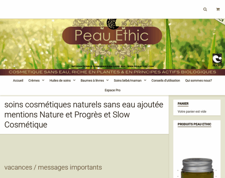 Peau ethic soins cosmétiques naturels fabriqués en France