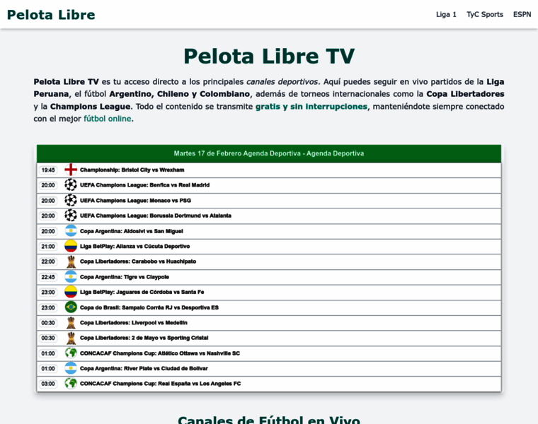 Pelota Libre TV | Fútbol en Vivo y Canales Deportivos Online
