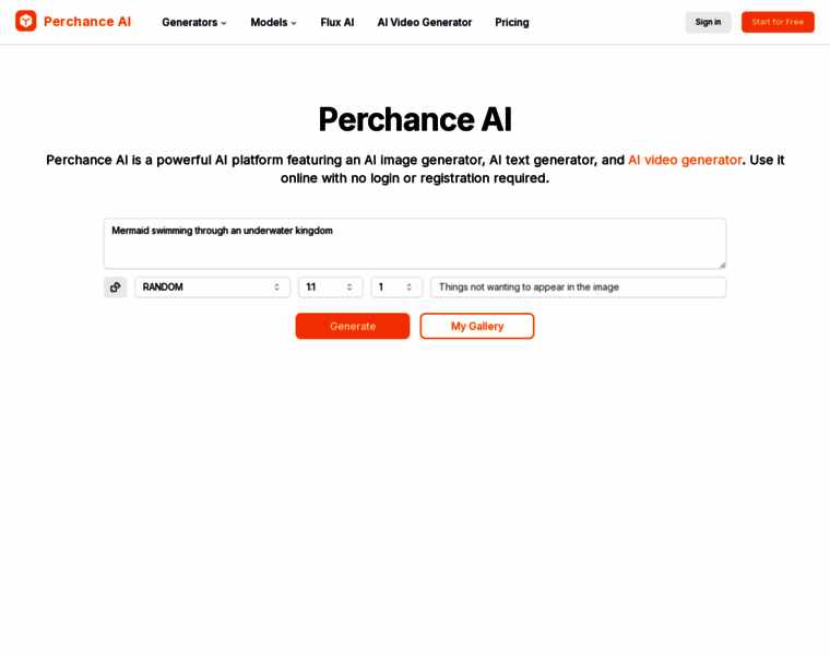 Perchance AI is a powerful AI platform featuring an AI image generator, AI text generator, and AI video generator. Use it online with no login or registration required.