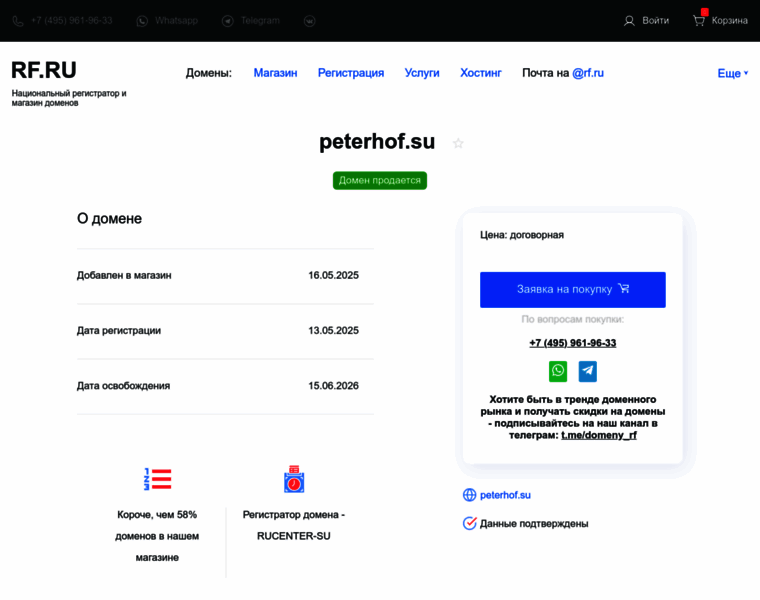 The registrar of peterhof.su is RUCENTER-REG-RIPN and the name expires on 2026-05-13. According to open source data, you can reach the owner at vipzonarf@gmail.com but please make sure you have a good reason for unsolicited messages. Their country of residence is Russian Federation.