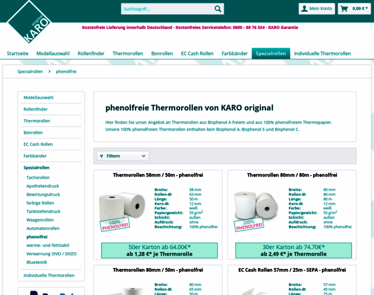 100% phenolfreie Thermorollen und EC Cash Rollen