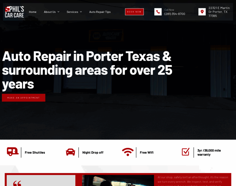 Phil’s Car Care in Porter, TX offers expert auto repair, friendly service, and fast turnaround. Visit us or schedule online today.