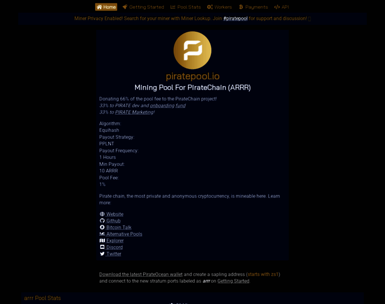 piratepool.io - mining pool for PirateChain (ARRR) - the most private and anonymous mineable cryptocurrency - Pirate