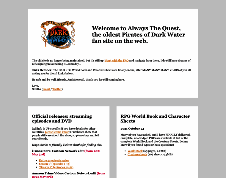 Always The Quest: Pirates of Dark Water fan site