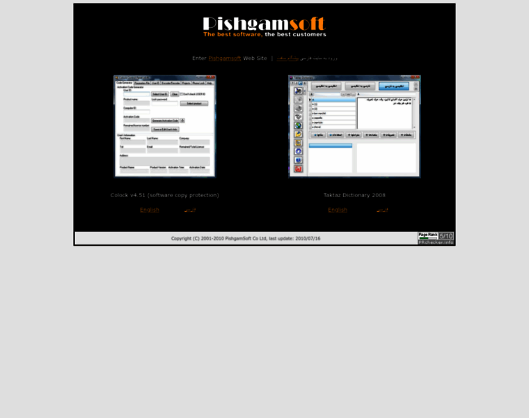 Pishgamsoft Home Page, Colock (Software Copy Protection and Lock), Taktaz Dictionary, Persianary Dictionary, ... .