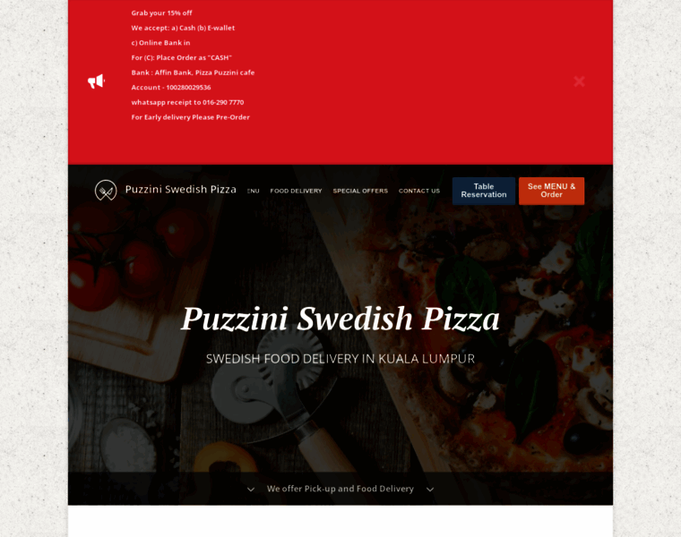 Order Online for Takeaway / Delivery or Book a Table. Here at Puzzini Swedish Pizza - Petaling Jaya you'll experience delicious Pizza, Pasta, Swedish cuisine. Try our mouth-watering dishes, carefully prepared with fresh ingredients! At Puzzini Swedish Pizza, our recipe for success is simple – Great food & care makes customers return every time.