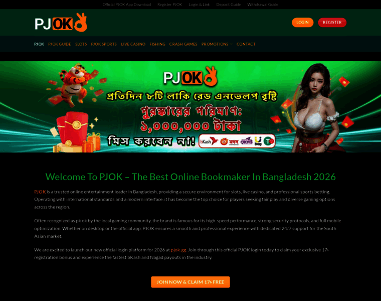 oin PJOK Official (pk ok) for the fastest bKash & Nagad withdrawals in BD! Claim your 17৳ FREE Bonus today. Secure MGA licensed slots & cricket betting.