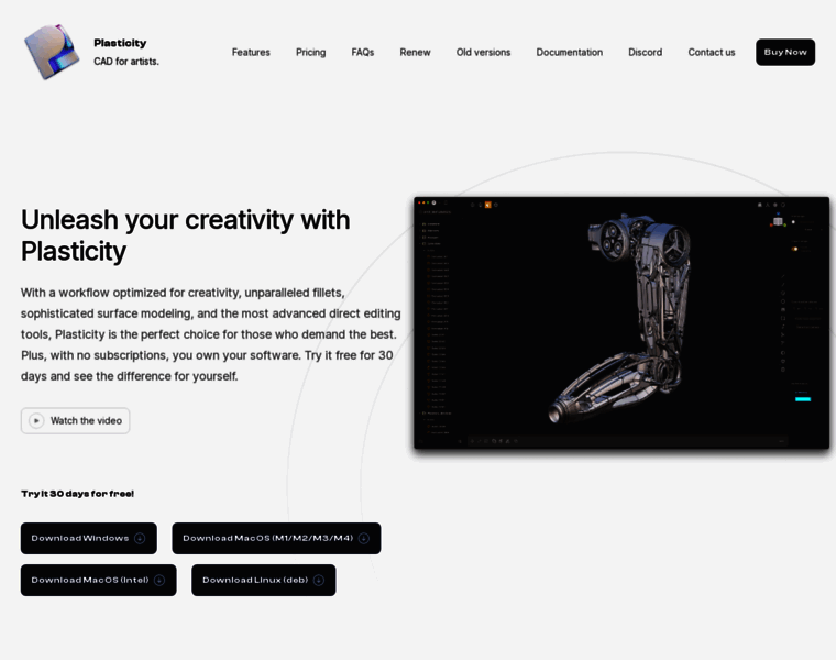 Plasticity is a 3D modeling and CAD program that is easy to use and has a focus on artistic workflows.