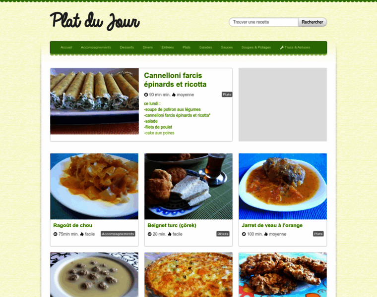 Plat du jour - Recettes de cuisine, Entrée, plats, desserts. Toutes les recettes sont sur plat-du-jour.net. Conseils, astuces, des idées pour cuisiner, pour trouver le plat du jour.