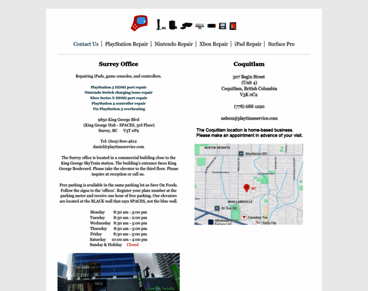 King George SkyTrain station. PlayStation 5 HDMI repair, Controller repair, Deep cleaning, Xbox HDMI repair, PS4 motherboard repair, Nintendo Switch repair, 3DS screen repair, Wii U 160-1400 repair, iPad Repair.
