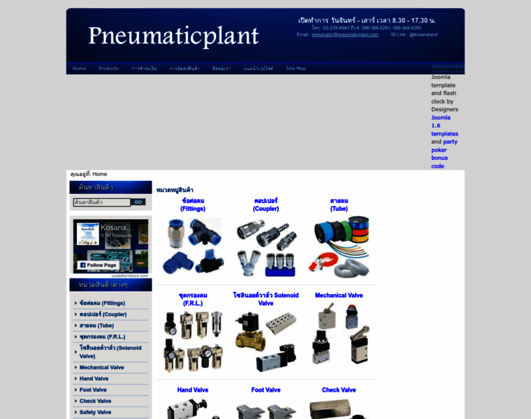 ศูนย์รวม อุปกรณ์ลม (นิวเมติกส์) อาทิ ข้อต่อลม คอปเปอร์ลม สายลม ชุดกรองลม (F.R.L.) โซลินอยด์วาล์ว วาล์วมือโยก วาล์วลม วาล์วปรับลม กระบอกลม โช้ค เกจวัดแรงดันลม เครื่องมือลมต่างๆ
