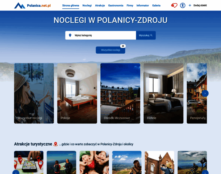 Szukasz noclegu w Polanicy-Zdrój w górach? Oferujemy domki, apartamenty, hotele, pensjonaty, pokoje w ośrodkach wczasowych. Przygotowaliśmy również atrakcyjne oferty specjalne na wakacje, wczasy z psem, wakacje z dziećmi, ferie zimowe w górach wczasy dla seniorów oraz grup zorganizowanych. Opisy atrakcji turystycznych i kulinarnych w Polanicy-Zdrój