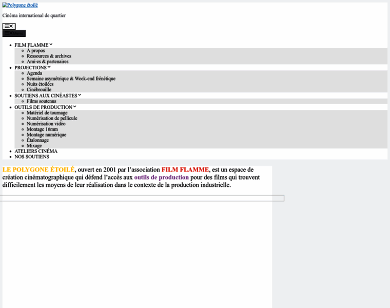Bienvenue sur le site du Polygone Étoilé, un lieu créé en 2001 par l’association de cinéastes et d’artistes Film flamme.