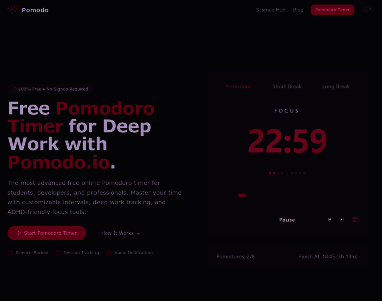 Pomodo is the most advanced free online Pomodoro timer for students and professionals. Master your time with customizable intervals and deep work tracking.