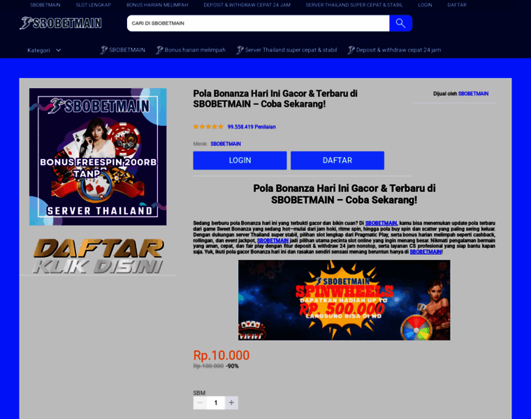 Temukan pola Bonanza hari ini yang paling gacor dan terbukti menang. Mainkan slot Sweet Bonanza di SbobetMain dengan bonus besar dan RTP tinggi!