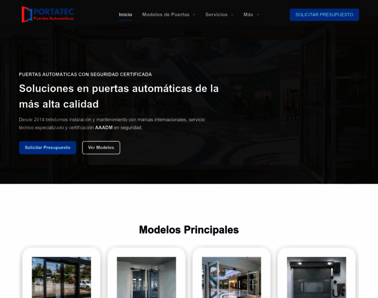 PUERTAS AUTOMÁTICAS CON SEGURIDAD CERTIFICADA Soluciones en puertas automáticas de la más alta calidad Desde 2014 brindamos instalación y mantenimiento con marcas internacionales, servicio técnico especializado y certificación AAADM en seguridad. Solicitar Presupuesto Ver Modelos Desde 2014 brindamos instalación y mantenimiento con marcas internacionales, servicio técnico especializado y certificación AAADM en seguridad. Modelos Principales Puert...