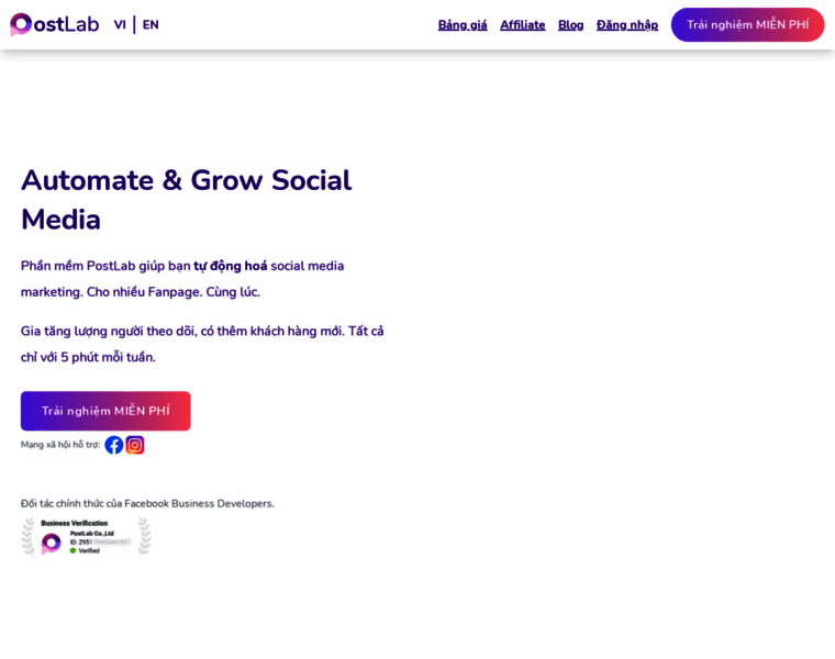 Phần mềm PostLab giúp bạn tự động hoá social media marketing. Cho nhiều Fanpage cùng lúc. Lập lịch content, sử dụng bài viết có sẵn, tự động đăng bài và hơn thế nữa.