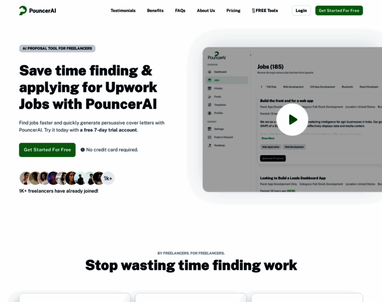 Get more work from Upwork with these Ai tools from PouncerAI. Optimize your Upwork Profile to attract more clients. Easily create and manage your proposals. And so much more. See for yourself.