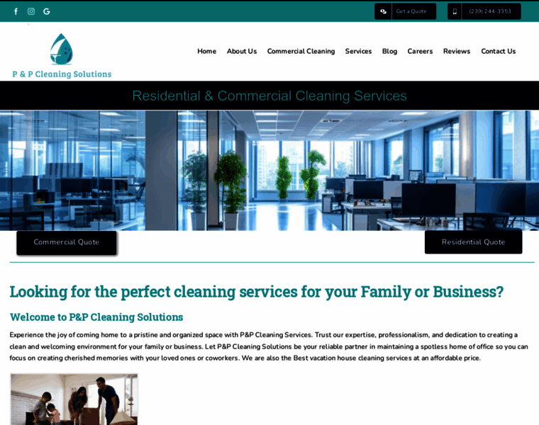 Commercial Quote Residential Quote Looking for the perfect cleaning services for your Family or Business? Welcome to P&P Cleaning Solutions Experience the joy of coming home to a pristine and organized space with P&P Cleaning Services. Trust our expertise, professionalism, and dedication