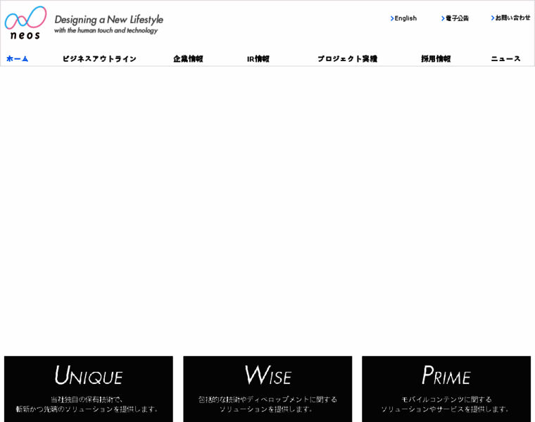 私たちネオスは、「先端技術」と「コンテンツサービス」そして「独自のビジネスデザイン力とプロデュース力により新たな価値を創造し、新しい時代の豊かなライフスタイルの実現に貢献してまいります。