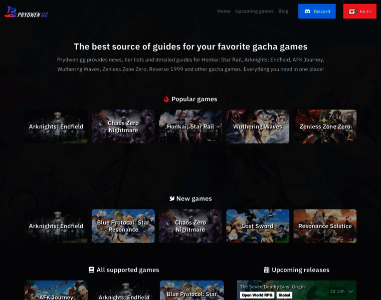 Prydwen.gg provides news, tier lists and detailed guides for Honkai: Star Rail, NIKKE, AFK Journey, Wuthering Waves, Zenless Zone Zero, Reverse 1999 and other gacha games. Everything you need in one place!
