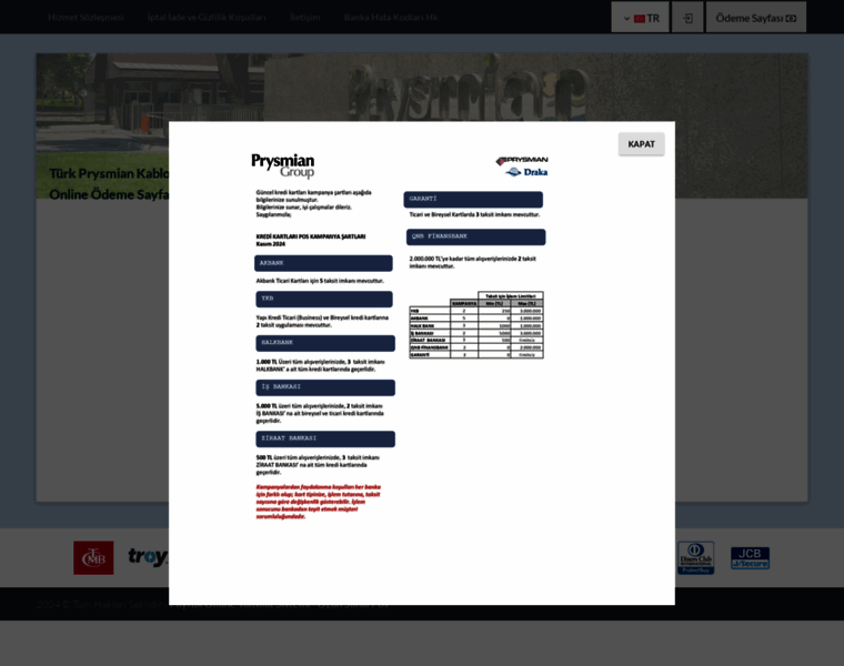 Türk Prysmian Kablo ve Sistemleri A.Ş.Online Ödeme Sayfası