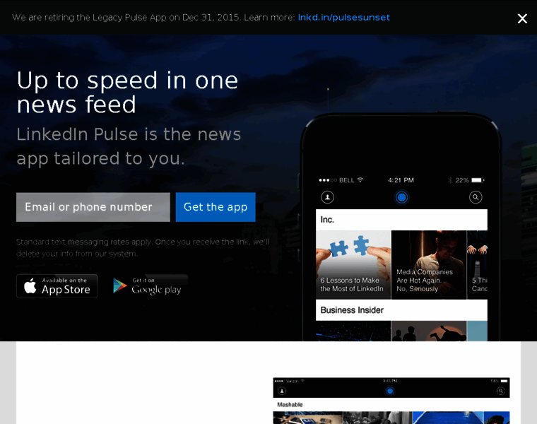 Get up to speed in one newsfeed with Pulse. This award-winning app puts relevant professional content at your fingertips and makes sharing with your network fast and easy. Get the app.