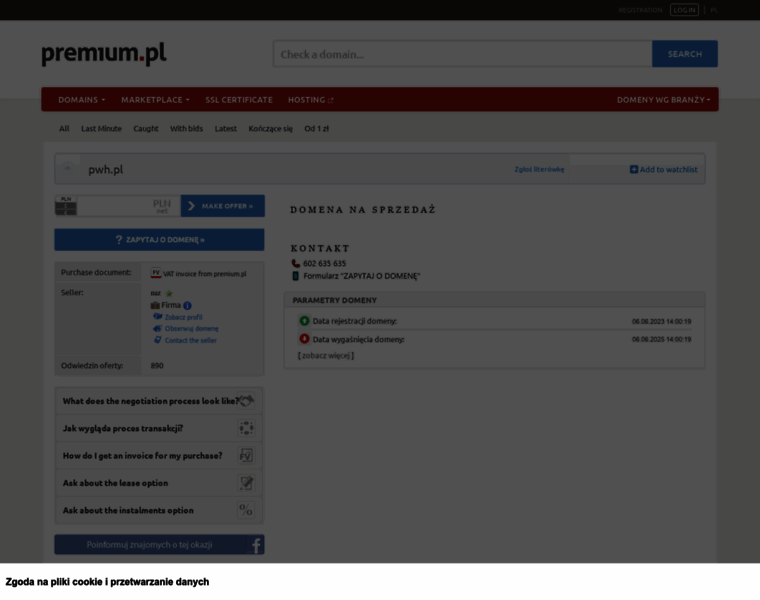 Oferta sprzedaży domeny pwh.pl (pwh)