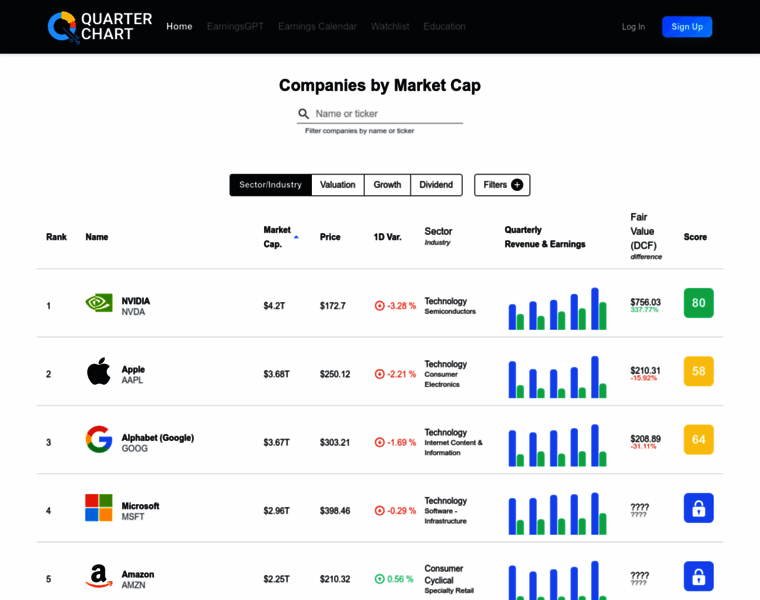Quarter Chart - Companies by Market Cap, Earnings & Financial Data