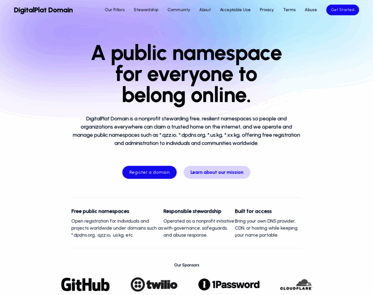 DigitalPlat Domain is a nonprofit stewarding free, public-benefit namespaces for people and organizations everywhere.