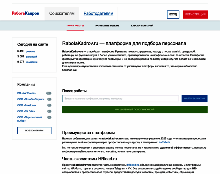 Поиск работы в Москве и регионах России, трудоустройство в родном городе. Подбор персонала, поиск работников и разместить вакансию