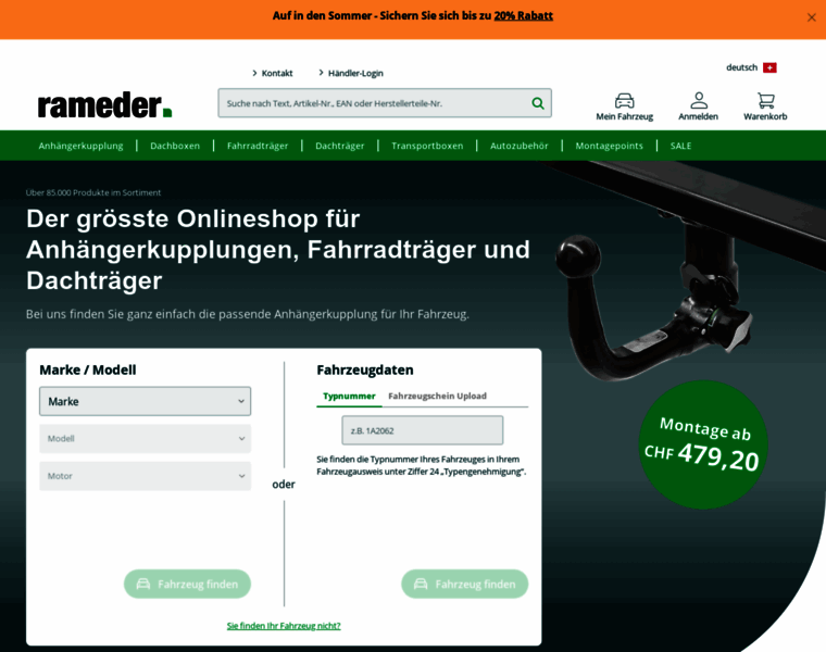 Der größte Onlineshop für Anhängerkupplungen, Fahrradträger, Dachträger in der Schweiz ★ 7.000 zufriedene Kunden ★ Für alle Fahrzeuge ★ Zum Shop!