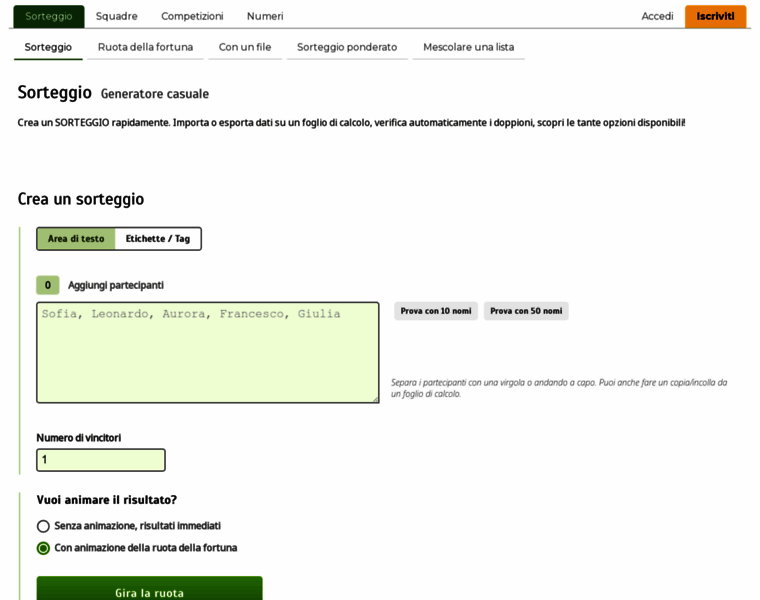 SORTEGGIO online - Generatore casuale