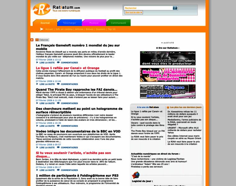 Media et Loisirs numeriques [BitTorrent, eMule, Kazaa, eDonkey, MP3, DivX...]