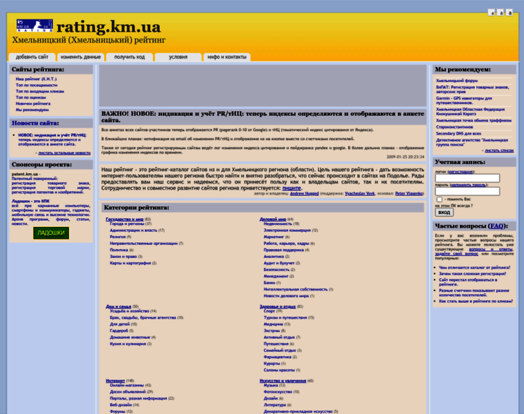 Хмельницкий рейтинг и полный каталог сайтов региона (области)
