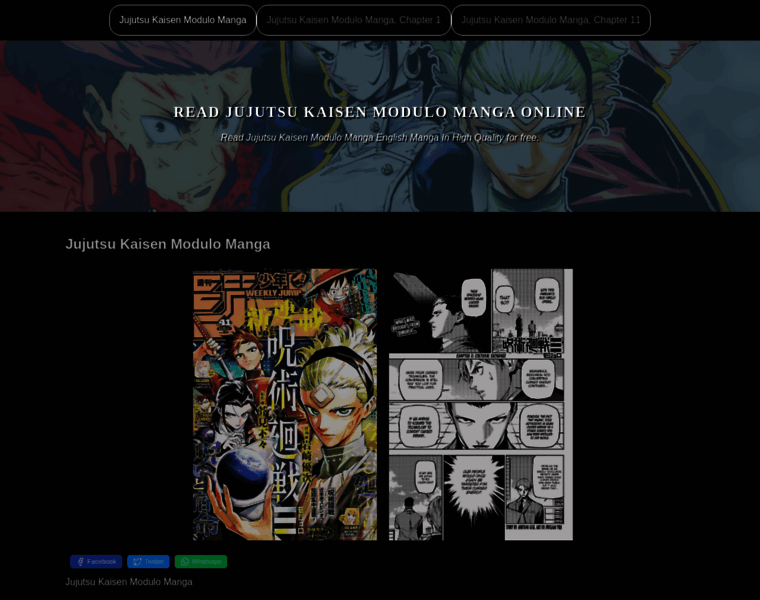 Read Jujutsu Kaisen Modulo Manga (JJK Sequel/Spin-Off) By Gege Akutami. The second chapter of Jujutsu Kaisen English Manga In High Quality for free. One of the best Weekly Shonen Jump Manga Series with One Piece, Jujutsu Kaisen, My Hero Academia, Chainsaw Man and Kagurabachi together.