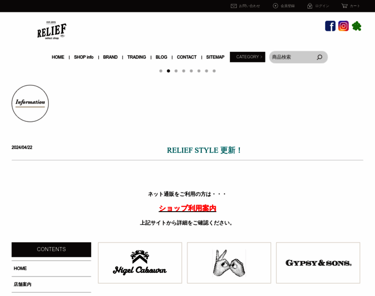 山口県光市のメンズセレクトショップ relief|Nigel Cabourn,artepovera,Gypsy&Sons,VOO,Barns Outfittersなど取り扱っております