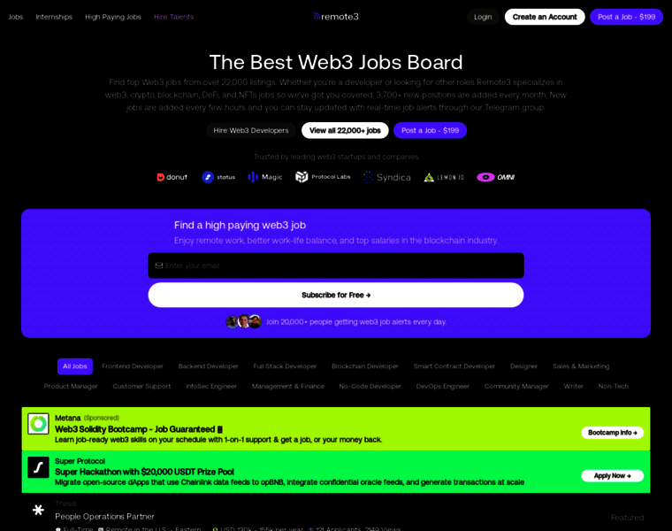 Explore 22,000+ top Web3 jobs on the best web3 job board. Find careers for Web3 developers, plus roles in crypto, blockchain, DeFi, NFTs, and more.