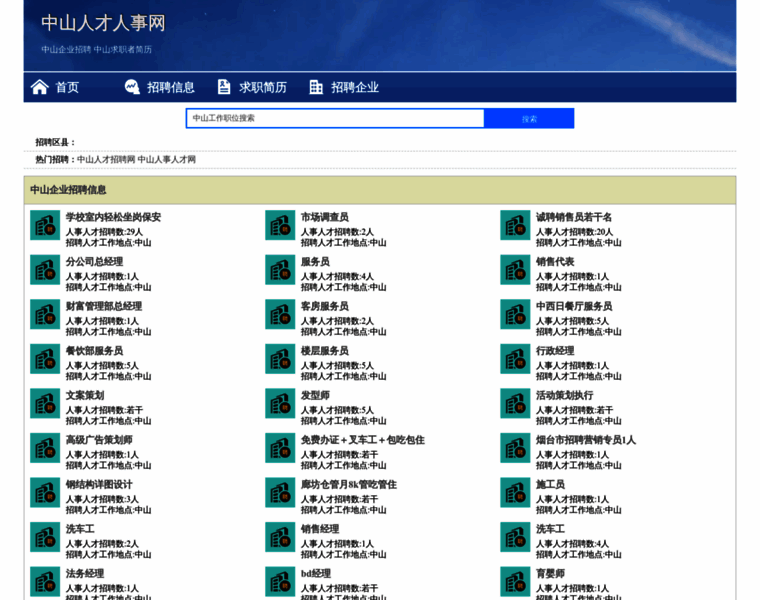 中山人才网 中山招聘网 中山人才人事网rencaizhongshan.com经营范围含:台式机、气体放电灯、巧克力、禽畜肉制品、洗碗机、固件、园林绿化用品、纺织品设计加工、工艺礼品、耐火(依法须经批准的项目,经相关部门批准后方可开展经营活动)。