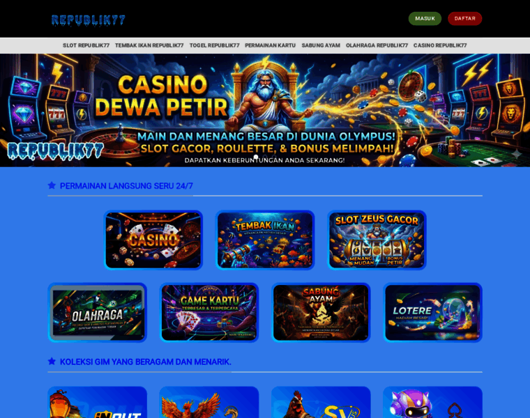 REPUBLIK77 adalah situs judi online terpercaya dengan ribuan game slot gacor dan taruhan bola terbaik. Nikmati promo menarik dan layanan 24 jam di REPUBLIK77.