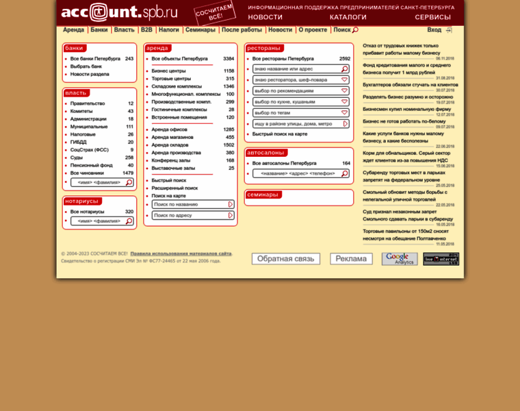 Санкт-Петербург. Коммерческая недвижимость: бизнес центры, торговые центры, торгово-развлекательные центры, встроенные помещения. Банки. Семинары. Работа: вакансии, отдел рекрутинга, центр стажировок. Помощь бухгалтеру: бланки, формы, платежные реквизиты. Власть: правительство, районные администрации, муниципальные образования, налоговые, гибдд. Справочная: фонд социального страхования, пенсионный фонд, страховые медицинские организации.