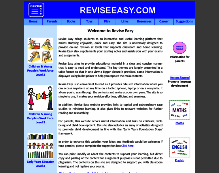 Revise Easy is designed to provide on-line revision that supports classroom learning and supplement your existing notes. It also helps you with your assignments. Revise Easy aims to provide educational material in a clear and concise manner that is easy to read and understand. The key themes are largely presented in a table format so that in one view a bigger picture is provided. Some information is displayed using bullet points to help you captu...