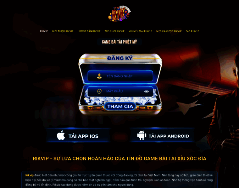Rikvip - Thương hiệu game đổi thưởng uy tín nhất hiện nay. Cung cấp nhiều trò chơi như: Tài xỉu, game bài, slot, xổ số. Hệ thống nạp rút nhanh, hỗ trợ 24/7.