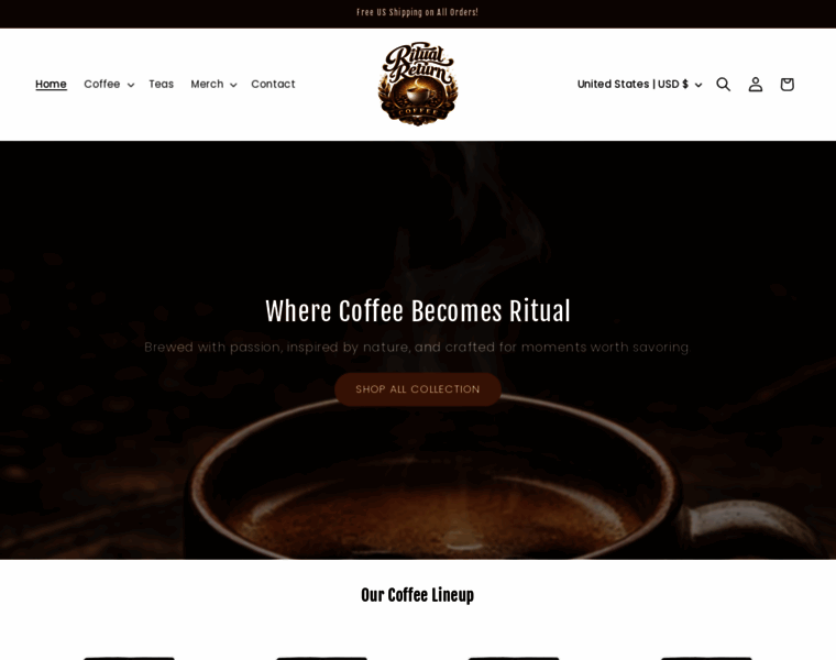 Ritual Return Coffee offers intentional coffee and tea designed as a daily ritual. Begin the day grounded, focused, and present. Return daily.