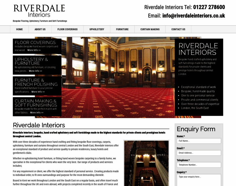 Riverdale interiors are a specialist supplier of flooring, upholstery and custom made furniture. Customers include hotels, London gentlmen's clubs, designers & architects in London and the South East of England.