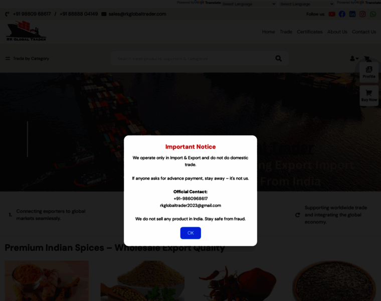 RK Global Trader | Certified Exporter from India | Import & Export Solutions